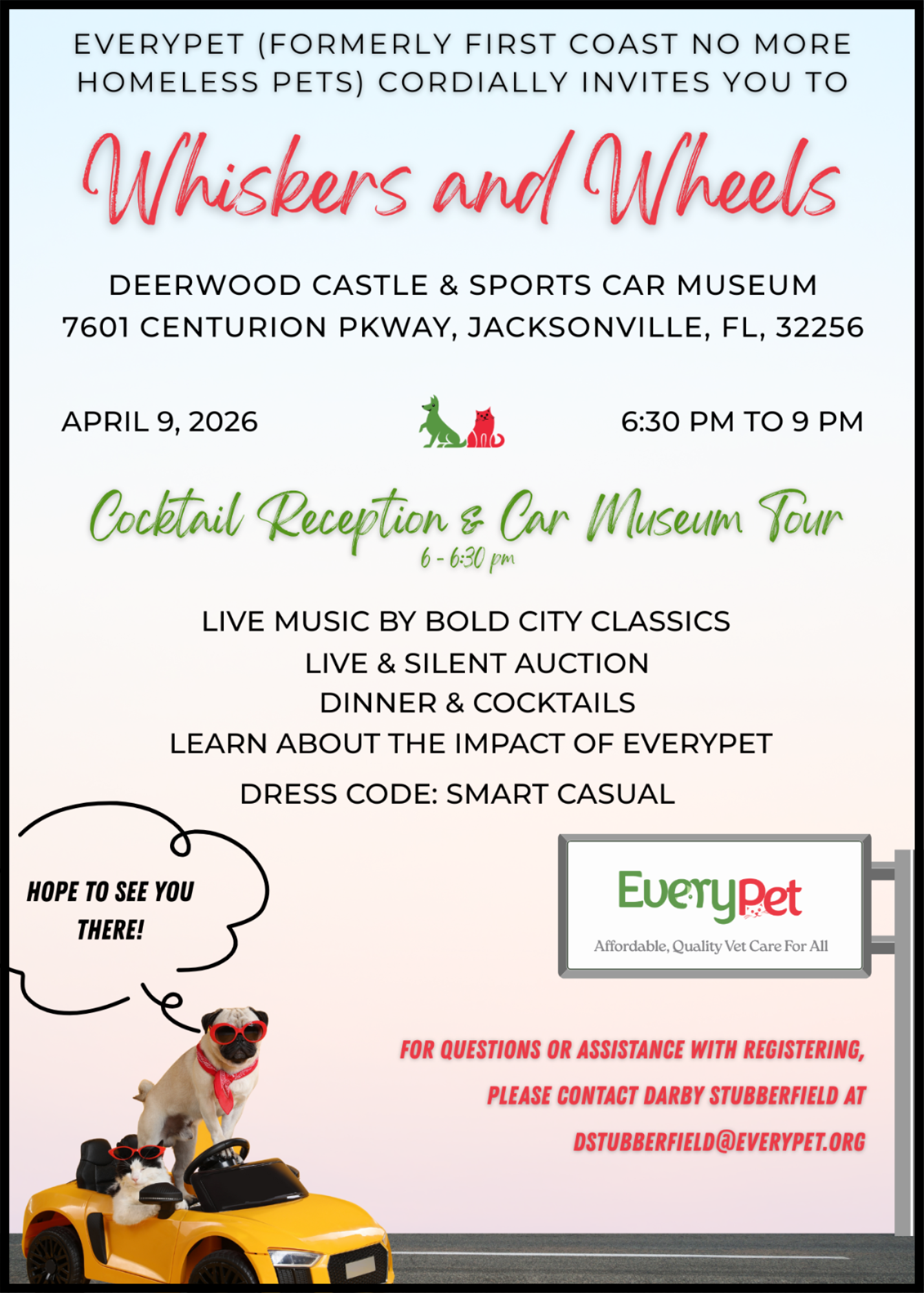 On April 9th, we’ll gather at Deerwood Castle, home of the Jacksonville Sports Car Museum, for a one-of-a-kind night benefiting EveryPet’s mission to provide affordable veterinary care for pets in our community.