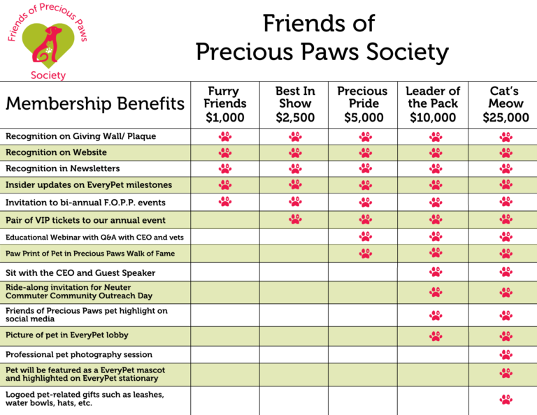 We extend our heartfelt thanks to all our Friends of Precious Paws Society members for their generosity and compassion. Your commitment helps EveryPet continue its mission to save lives, keep families together, and ensure every pet has the chance to thrive!