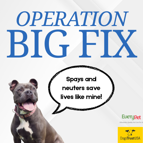 Thanks to generous funding from Dogs Trust USA, EveryPet is proud to offer FREE dog spay and neuter services through Operation Big Fix at our Norwood Spay/Neuter Center & Community Clinic. This program helps reduce financial and scheduling barriers while reducing unplanned litters and shelter intake.