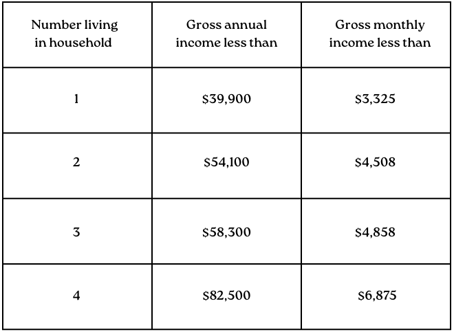 - Meet the following household income guidelines: