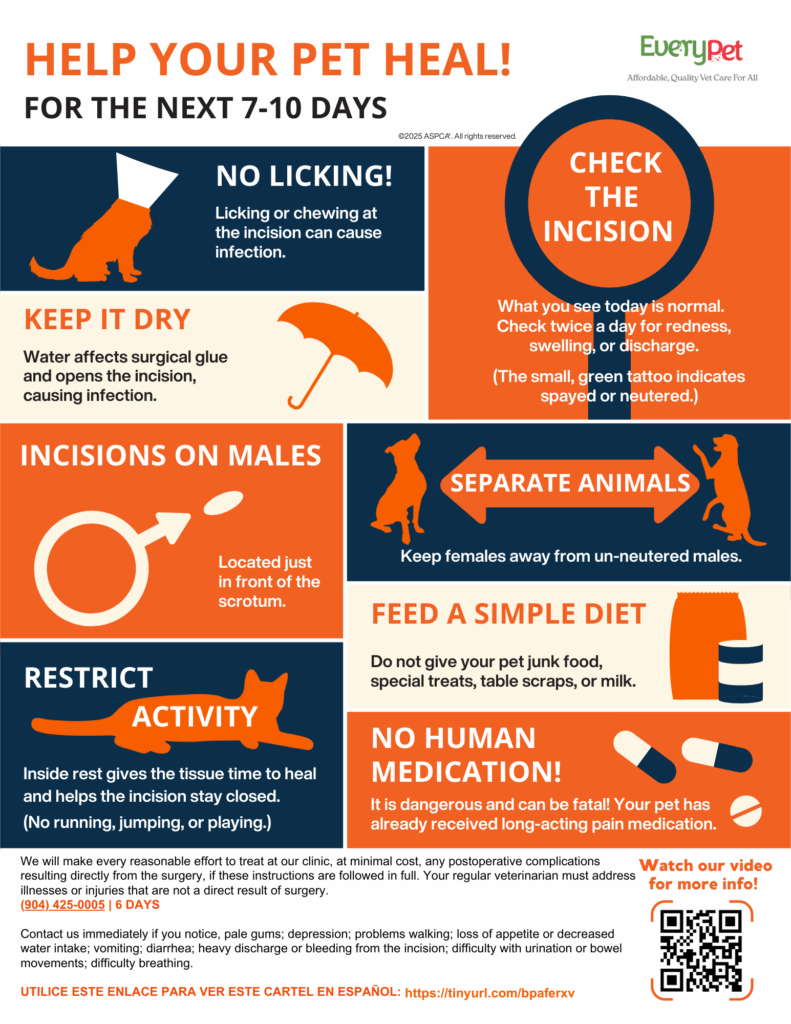 Your pet’s recovery matters. This page is designed to support you through your dog or cat’s post-operative care following surgery—most commonly spay or neuter procedures. Below, you’ll find clear, veterinarian-approved instructions to help promote safe healing, manage discomfort, and prevent complications during recovery. Every pet is different, so these guidelines are meant to complement—not replace—your veterinarian’s advice. If you have questions or concerns at any point, our team is here to help ensure your pet heals comfortably and confidently.